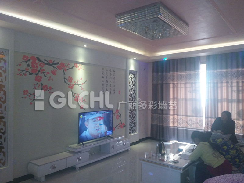 河南睢縣王老板經(jīng)營(yíng)了一年多的廣麗多彩墻藝,在當(dāng)?shù)貕γ嫜b飾市場(chǎng)已占有一席之地,他通過(guò)公司的“專業(yè)定制背景墻”理念,將這款時(shí)尚、大氣、獨(dú)特的產(chǎn)品引進(jìn)千家萬(wàn)戶,下面來(lái)欣賞一下他的施工案例吧: